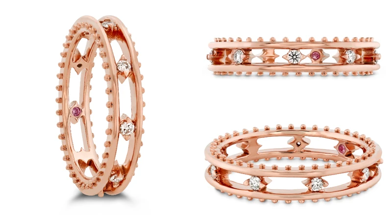 Hearts On Fire 最近與美國知名婚紗設計師 Hayley Paige 合作的系列,以頂級鑽石搭配時髦款式為主打,根本是小資女孩最棒的投資,這款戒指靈感來源來自 Hayley Paige 禮服設計中的緞帶,戒指採用縷空設計,營造美鑽與寶石漂浮貼合在肌膚上的視覺效果,很適合與其它款式的戒指作混搭,時尚感滿點!(同系列白K金款也很好看)