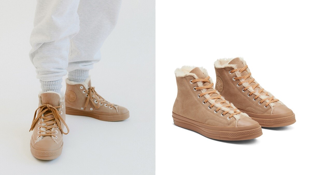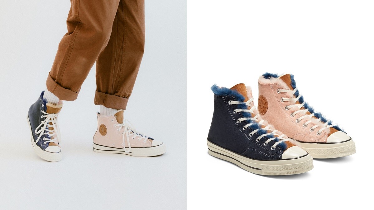 想為寒冷的冬日添購幾件時髦單品嗎!那Converse全新問世的Shearling系列,女孩們絕對不能錯過,選擇品牌熱賣鞋款Chuck 70為基型,運用柔軟的麂皮材質打造鞋面,毛絨絨的內裡面料加上舒適Ortholite鞋墊,分別有深藍霧粉拼接撞色及焦糖奶茶色兩種風格。