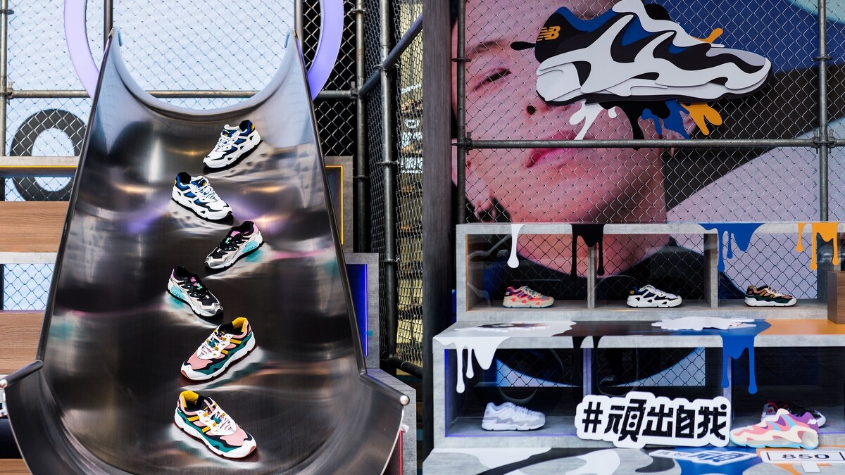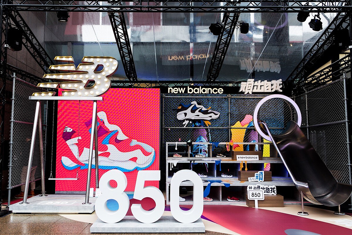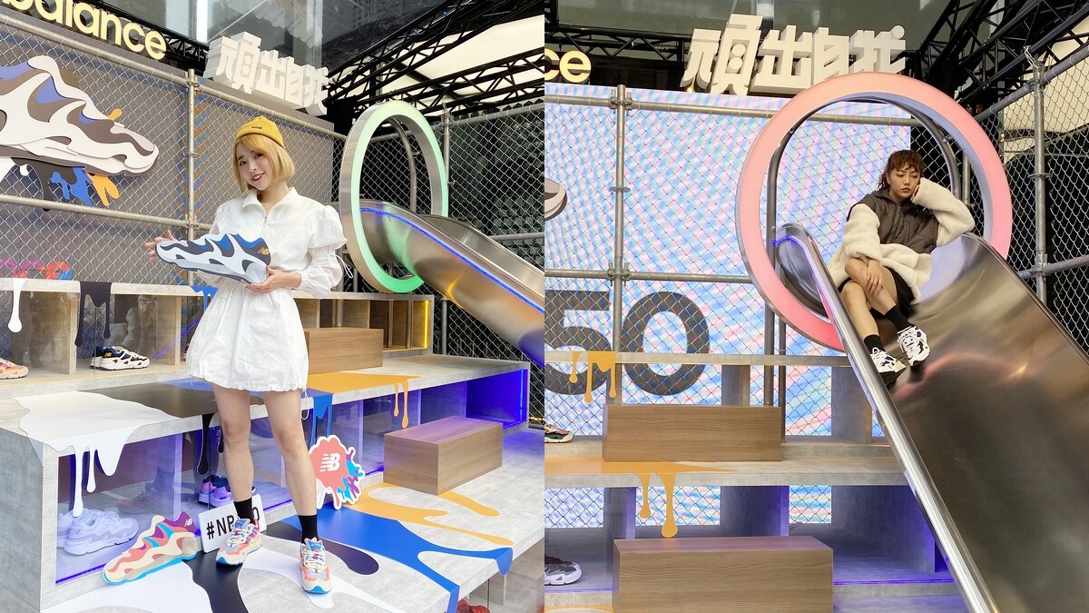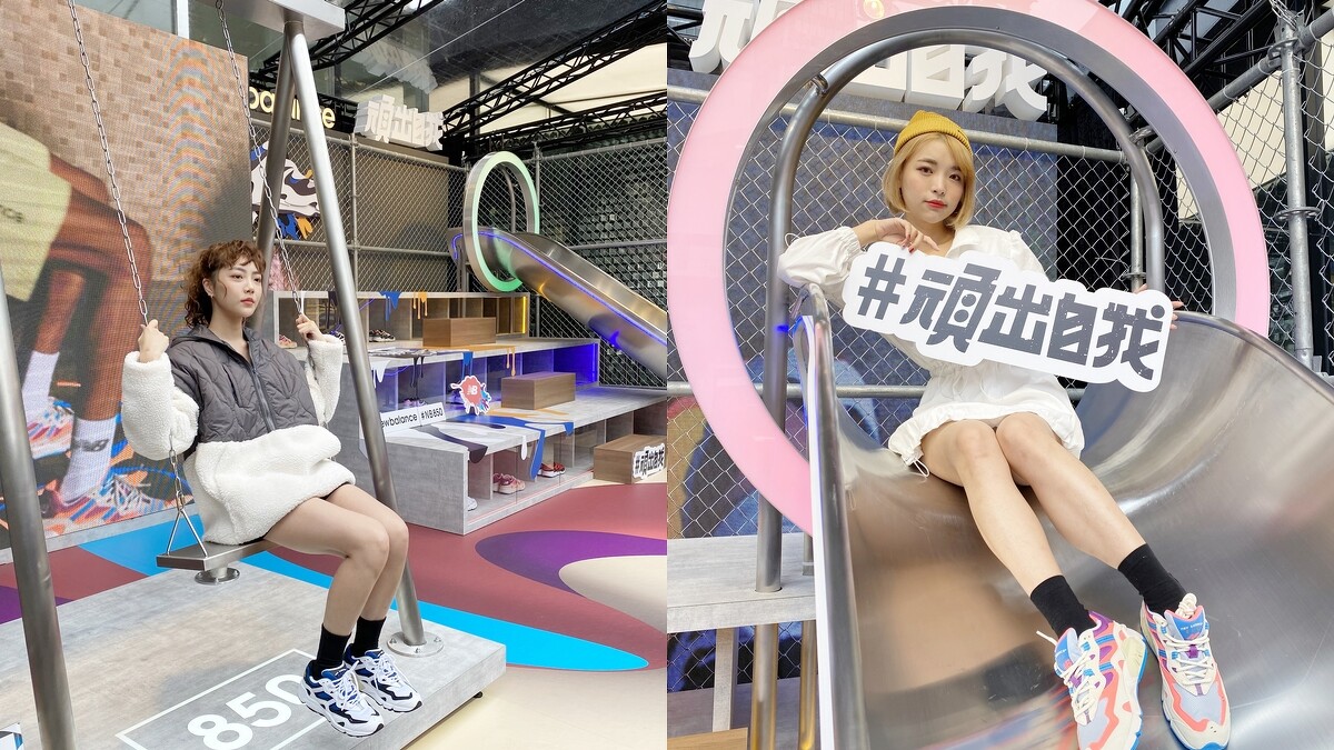 為了讓大家可以近距離接觸New Balance 850,這周末開始在台北新光三越A11左前廣場舉辦了快閃店「頑酷遊樂場」,有電子牆不斷電播放850超潮形象廣告,復古感十足霓虹燈飾與燈泡logo,超級美式的街頭氛圍,讓人覺得彷彿來到NYC,滿滿的街頭風塗鴉藝術,還有根本像從紐約布魯克林搬來的復古溜滑梯,還有超酷的盪鞦韆,讓人頑心大發,現場所有人都頑出自我,包含阿圓、李柔都也穿上Classic Blue 850在頑酷遊樂場拍到停不下來。