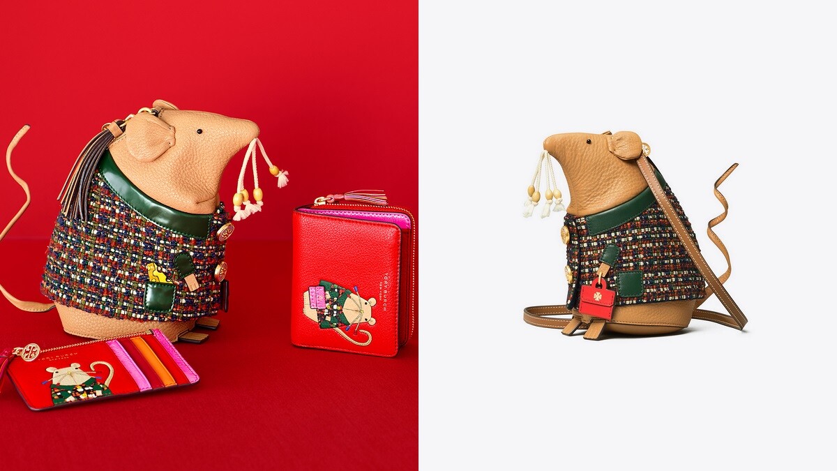 來自美國的設計師品牌Tory Burch,為農曆鼠年設計新成員錢鼠Rita,透過擬人化的手法,讓老鼠化身鼠年最佳代言人,穿著優雅的軟呢外套,領口搭配祖母綠的皮革緄邊,胸口縫製金色雙T Logo 珍珠母貝鈕釦,左手提著迷你小包,右邊口袋還放著她最愛的起士。結合最能代表新年的紅色,推出服飾、手袋、鞋履及小配件。