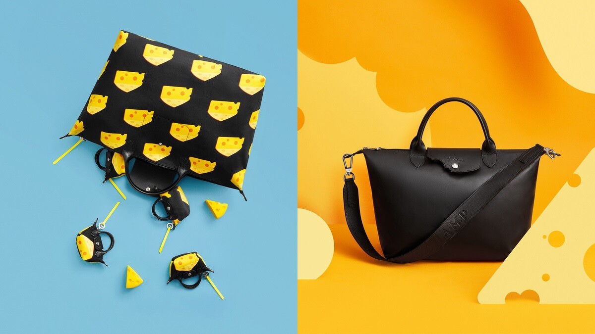 法國皮件品牌Longchamp則以小老鼠最喜愛的起司為主題,結合品牌明星商品Le Pliage手袋,推出實背又具紀念價值的限量手袋、包包。鼠年限定系列將黑色款牛皮手袋結合起司圖案,皮革翻蓋還被改造成波浪狀設計,就像是小老鼠偷咬一口十分趣味。除了皮革手袋外,還同步推出帆布款式,包含旅行袋、小手袋、手提袋、肩背包與超迷你Nano Pliage包型共7種款式。