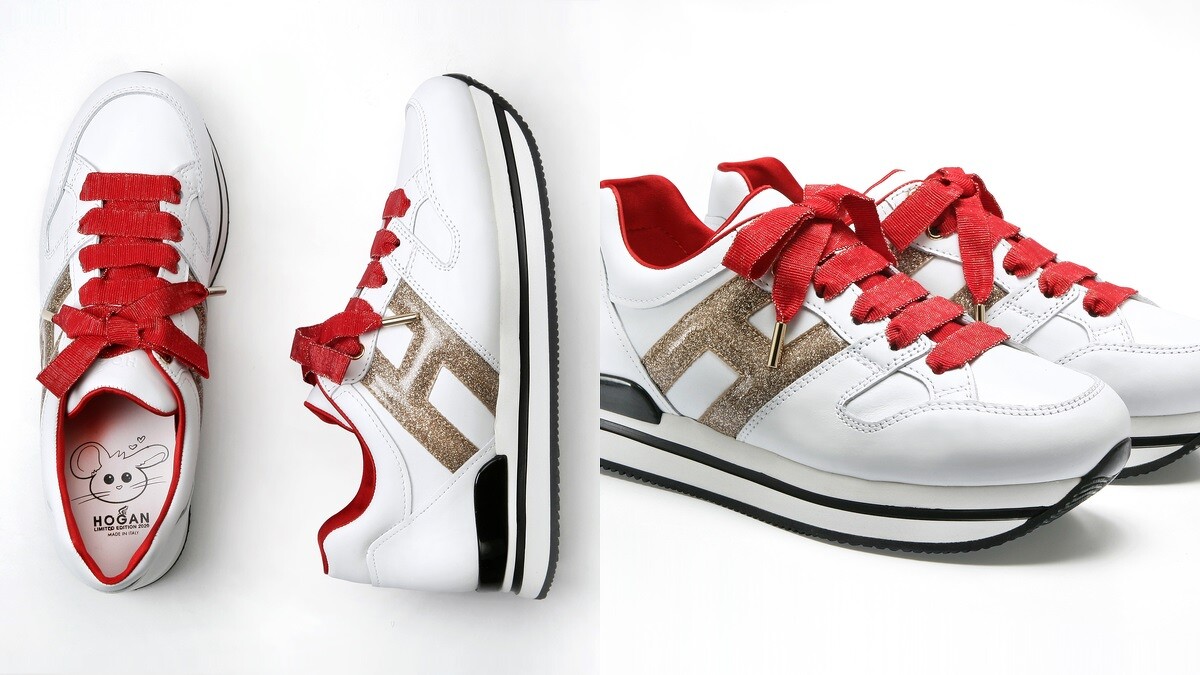 義大利鞋履品牌HOGAN為延續佳節氣氛至農曆新年,隆重推出獻鼠年新春限定系列。女鞋以經典鞋款H222休閒鞋為基調,採用代表喜氣的金色及紅色,再搭配上緞帶樣式的鞋帶,鞋墊印上可愛小鼠素描圖案。男鞋則以黑白主色 ICUBE休閒鞋為雛型,搭載新年特殊的記憶鞋墊,並運用紅色裝飾鞋身,營造喜氣的節慶氛圍。