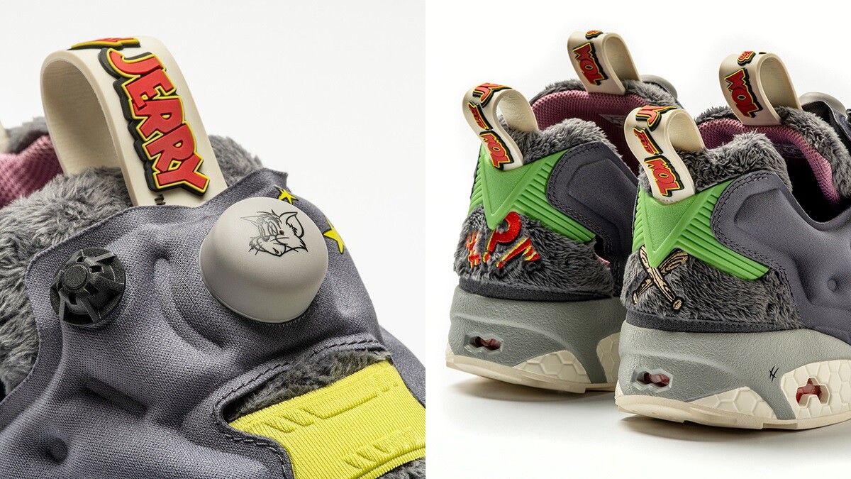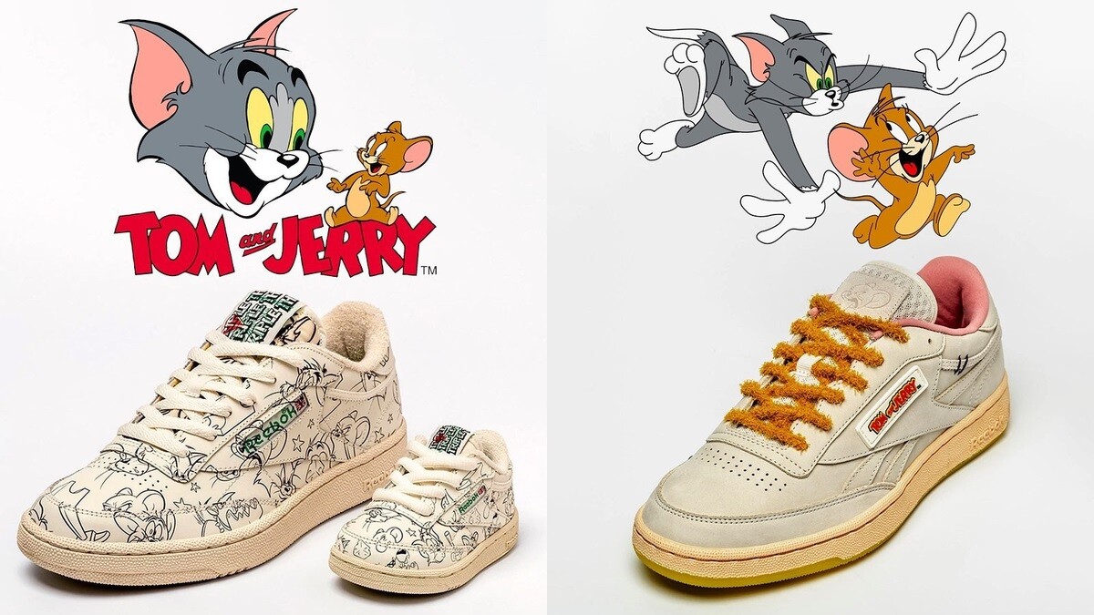 熱賣的充氣鞋INSTAPUMP FURY結合狡猾的湯姆貓意象,以仿貓毛的材質拼接而成,鞋底還有被貓抓的爪痕圖案。另一雙經典鞋款CLUB C REVENGE厚底鞋,則是傑利鼠的化身,運用棕色麂皮打造的鞋身,並加入粉色的鞋內層,看似中性配色卻隱藏夢幻元素。Reebok X 湯姆貓與傑利鼠聯名系列就在2020年1月24日正式開賣,喜愛湯姆貓與傑利鼠卡通的你可別錯過。