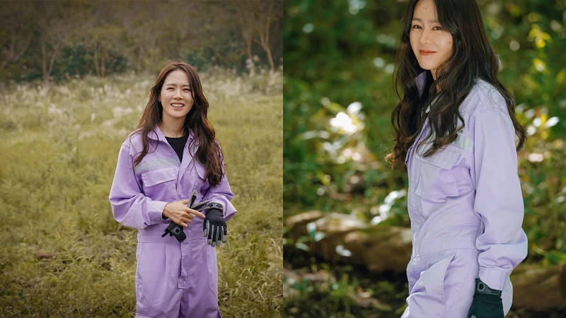 復古文青風持續延燒,孫藝珍這一身格紋西裝式洋裝,可以說是最佳穿搭示範,裡頭再搭配白色襯衫,展現懷舊的學院風格,看起來更多了一點書卷氣息。