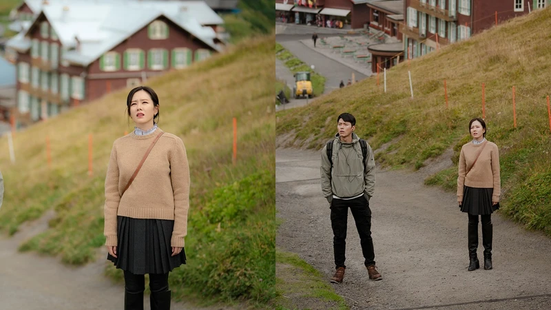 到了風俗民情純樸的北韓,孫藝珍換上簡單的黑色套頭上衣搭配同色系長褲,再外搭一件米白色的淺色襯衫,展現身為富家千金的率性一面。
