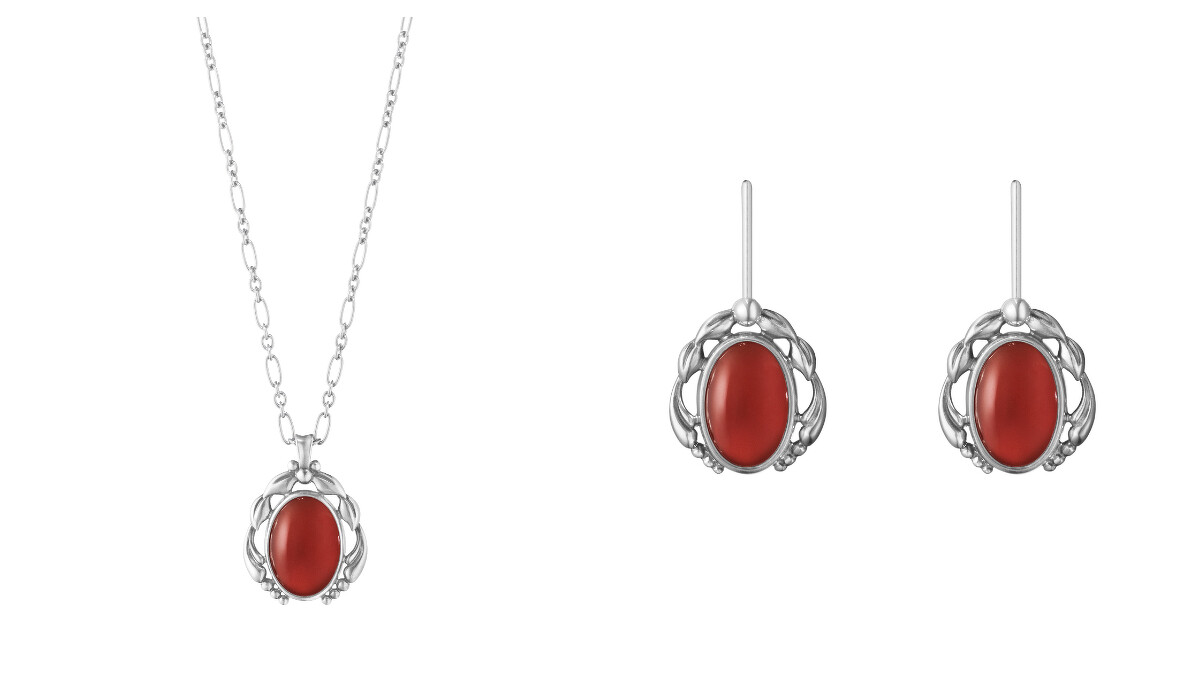 同樣承襲新藝術運動時期的優美弧線和自然華麗的風格,色澤飽滿的紅玉髓以有機圓形代表大自然毫不隱藏的真實美感,尤其2020年度紀念鍊墜精選通透嫣紅、象徵豐沛生命力的紅玉髓為主石,結合精湛的銀雕工藝,十足耀眼,同系列還有耳環可做搭配。