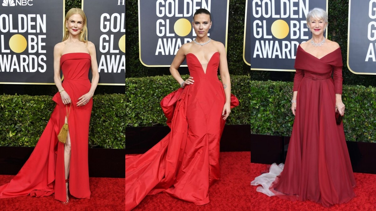 每當過年來臨,許多人都會選擇穿上紅吱吱的正紅色,除了象徵喜氣,也希望能替自己添上好運。然而雖說歐美國家並無此佳節,但在典禮紅毯的出席上,依然有許多女星會選擇穿上紅色禮服,襯托好氣色!好比這屆因《婚姻故事Marriage Story》入圍最佳女主角的Scarlett Johansson,就以心形領+臀部澎澎的設計禮服走上紅毯,搭配寶格麗的鑽石短項鍊等首飾,盡顯霸氣女人味。Nicole Kidman同樣身著正紅色禮服,但平口領+側邊高開衩設計,更呼應著她那高雅的絕倫氣質。而有別於前面提及的兩位女星,Helen Mirren選擇了酒紅色的交錯領禮服,襯托內斂且貴氣的風貌。