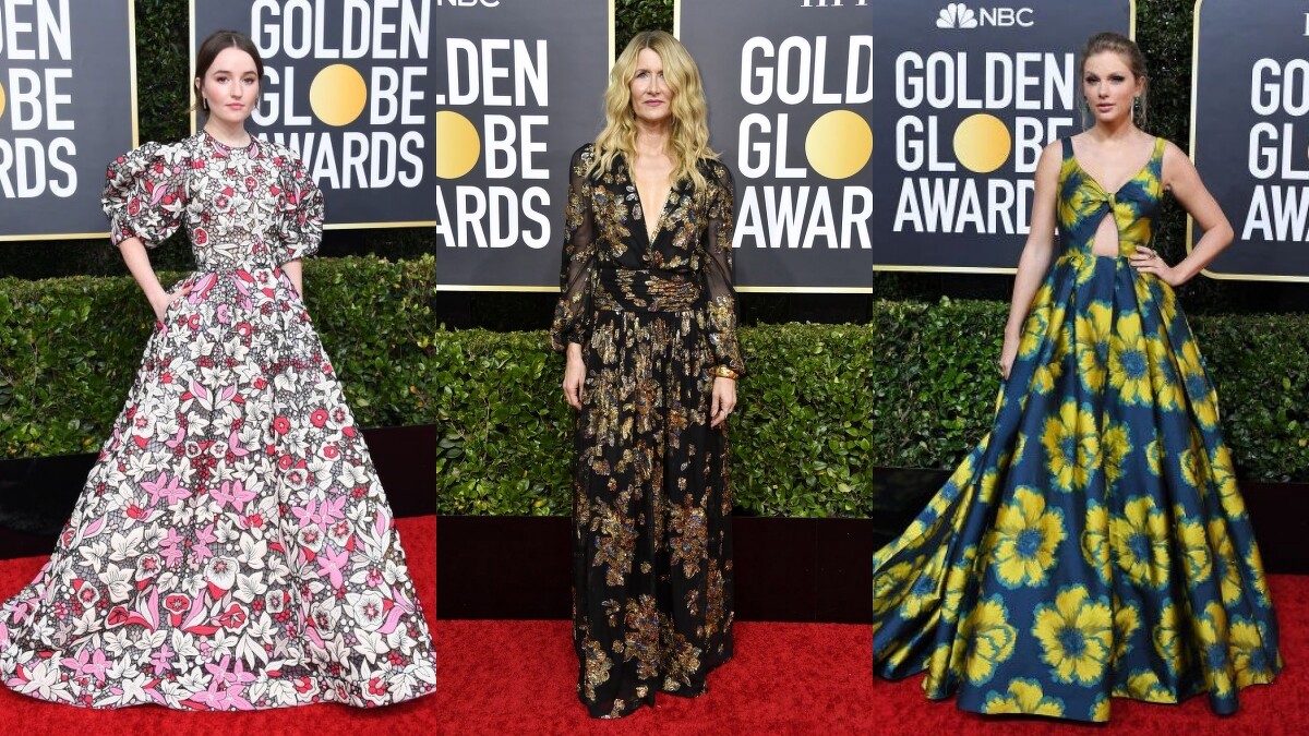 儘管身高未達160公分,但Kaitlyn Dever這回就向大家證明小個女孩依然能稱霸紅毯!一襲充滿古歐式宮廷的輪廓禮服,搭載上滿版花朵印花,猶如出生貴族世家的氣質小公主。然而除了Kaitlyn Dever的印花款禮服,Laura Dern 和Taylor Swift也紛紛拋棄純色禮服,改以華麗花樣款禮服亮相:Laura Dern身著的亮片刺繡禮服出自品牌Saint Laurent,其深V領的剪裁配上閃爍於禮服上的亮片,成熟同時又具有神秘魅力; 歌后Taylor Swift則以紮染效果的傘狀禮服走上紅毯,濃郁的色調不時散發著熱情的個人風格。