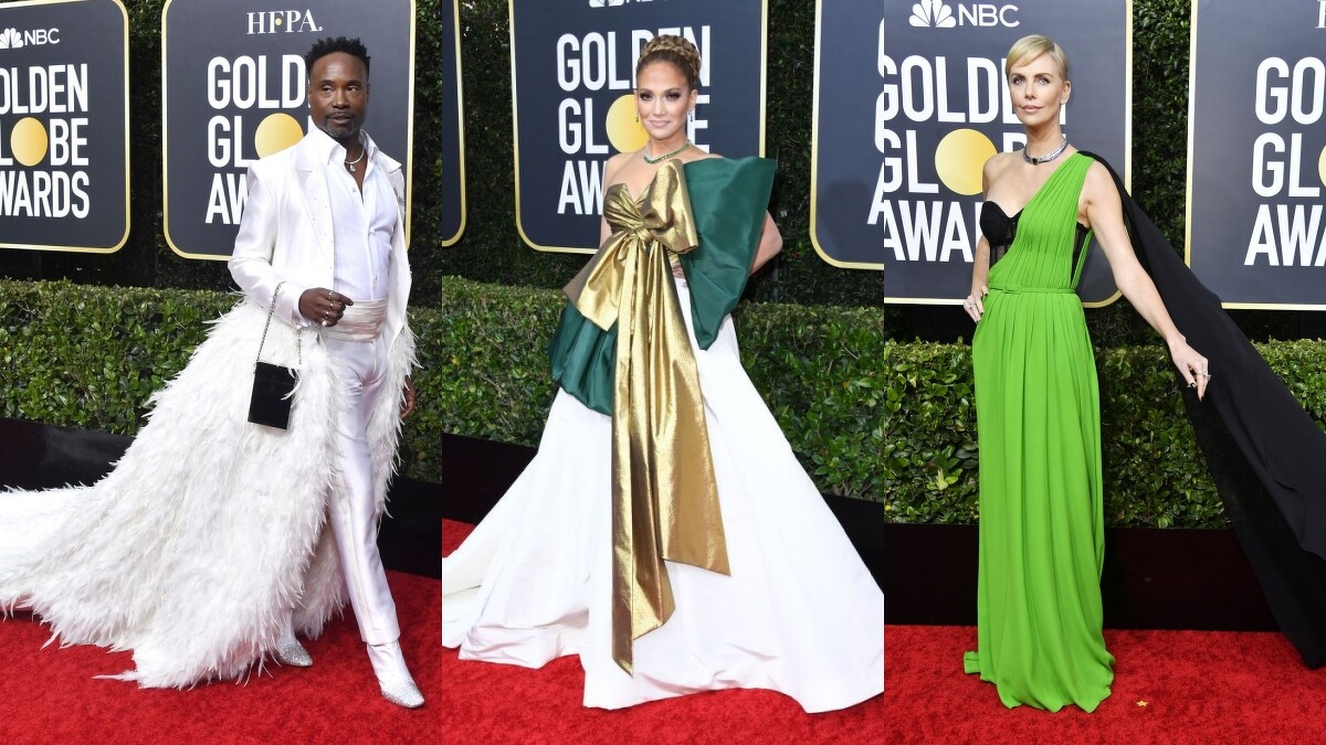 記得去年在奧斯卡典禮紅毯上,Billy Porter以一襲男女混裝造型驚豔全場嗎?如今Billy Porter的紅毯造型又再次抓住場上攝影師與眾人們的目光!絲緞西裝外套下擺拼接上了極具份量感的羽毛裙襬,走起路來氣勢滂礡,此外,手提的黑色鍊帶晚宴包則巧妙形成色彩上的對比,華麗與自信美完滿兼具。歌后Jennifer Lopez同樣選擇了一襲造型感十足的禮服,層疊的蝴蝶結搭配拖曳的不規則裙擺,華麗氣場難以忽略!因電影《重磅腥聞 Bombshell》入圍最佳女主角的Charlize Theron,選擇穿上跳Tone色的單肩禮服,背後搭載的垂墜披肩彷彿女戰士般自信且美豔。