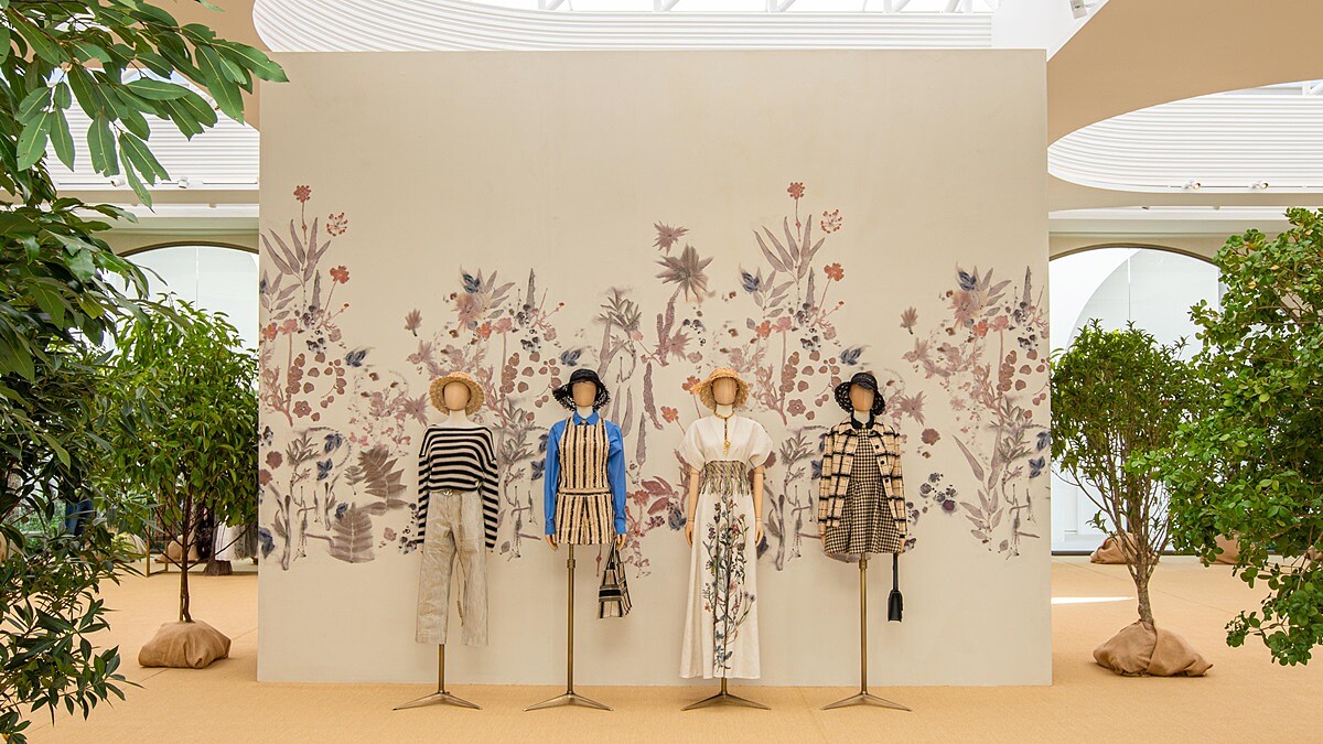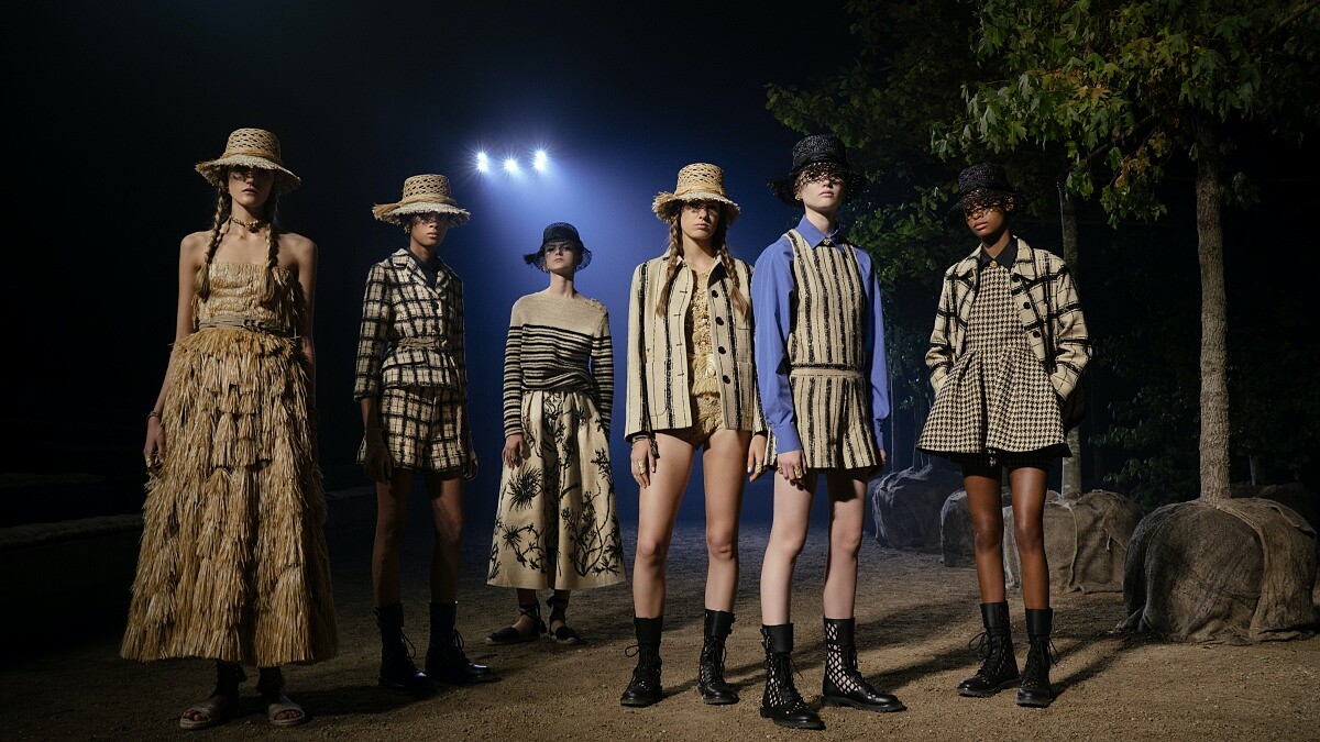 服裝部分可以看見大量的花卉圖案,以刺繡、編織、印染等不同方式呈現,其中最吸睛的莫過於漸層彩虹印染布料,以抽褶洋裝、工作褲裝等充滿度假風的單品呈現。配件部分像是明星包款Lady Dior、馬鞍包均換上全新材質,搭配天空藍、玫瑰粉、米白色等春夏色系,要女孩們怎麼能說不。適合炎熱氣候出沒的草編鞋、羅馬鞋、休閒便鞋也再次回歸。