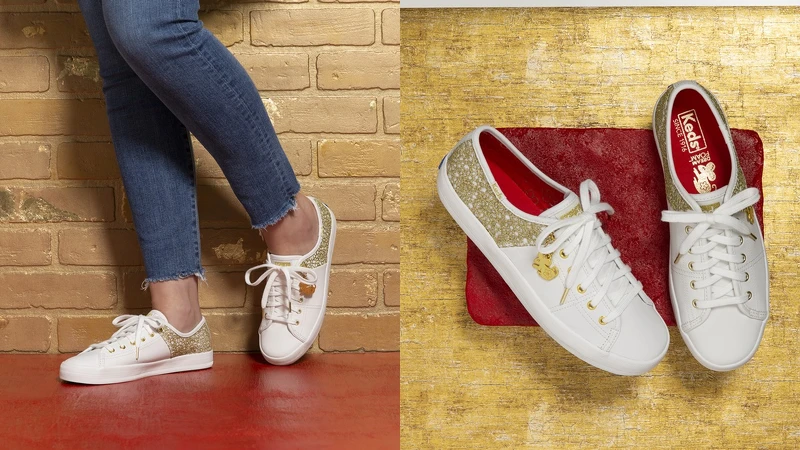為了迎接錢鼠年的到來,Keds今年選擇明星鞋款KICKSTART為雛型,將象徵好運與富貴的花卉,運用金色布料以縷空雕花的方式拼接,搭配喜氣的小金鼠吊飾,充滿農曆新年的節慶氛圍。Keds KICKSTART亞洲金鼠年限定款,NT2,690