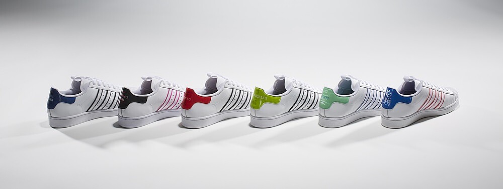 迎來Superstar誕生50週年紀念,特地以國際各大城市為設計靈感,搭配彩虹般繽紛配色與城市中文字樣,打造adidas Originals Superstar城市限定系列。包含倫敦、巴黎、紐約、洛杉磯、東京與上海,就連台北也在其中。鞋款設計則囊括皮革鞋面、鋸齒三條紋與橡膠貝殼鞋頭等經典元素,鞋後跟推出每座城市限定色,使經典Superstar具獨特收藏價值。