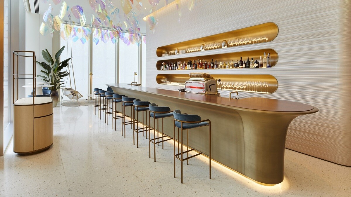 Le Café V從白天營業至晚上,與旁邊獨特的Cocoon空間一起,構成了路易威登全球專門店中首家開設的咖啡館。在酒吧旁的一個隱藏式門,還能通往須賀洋介開設的Sugalabo V餐廳,僅為少數饕客開放並只在夜晚營業。有機會到日本旅行的話,不妨到Maison Osaka Midosuji大阪御堂筋旗艦店朝聖吧!