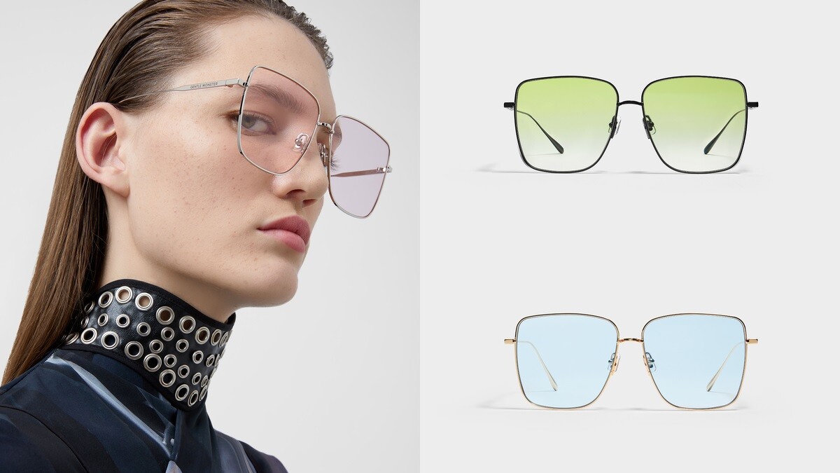2020春夏的糖果系鏡片風潮,搭配金屬鏡框營造年輕、活潑的氣息,此系列鏡框較大復古感十足,還有修修臉的效果。共有粉紅色、天空藍、淺綠色三種選擇。