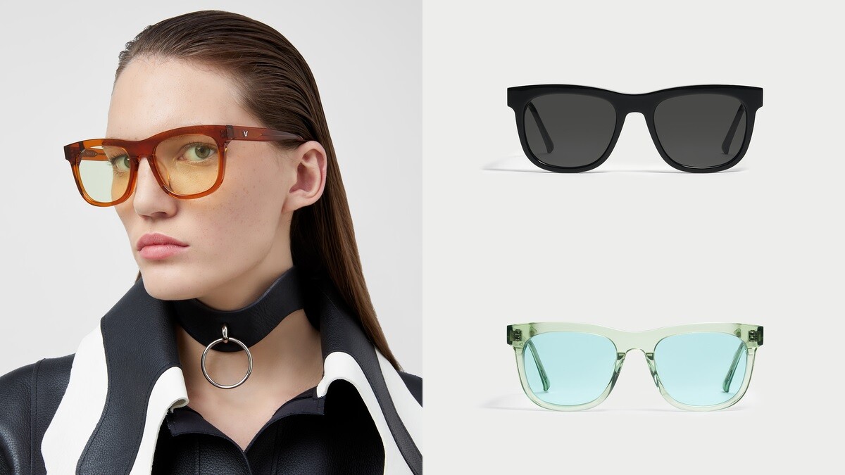 採用較方外觀的框型打造,鏡框外側上方的兩角為標誌,風格大膽鮮明,全新配色為淺黃色邊角搭配深藍色鏡片。共有四種款式供選擇。