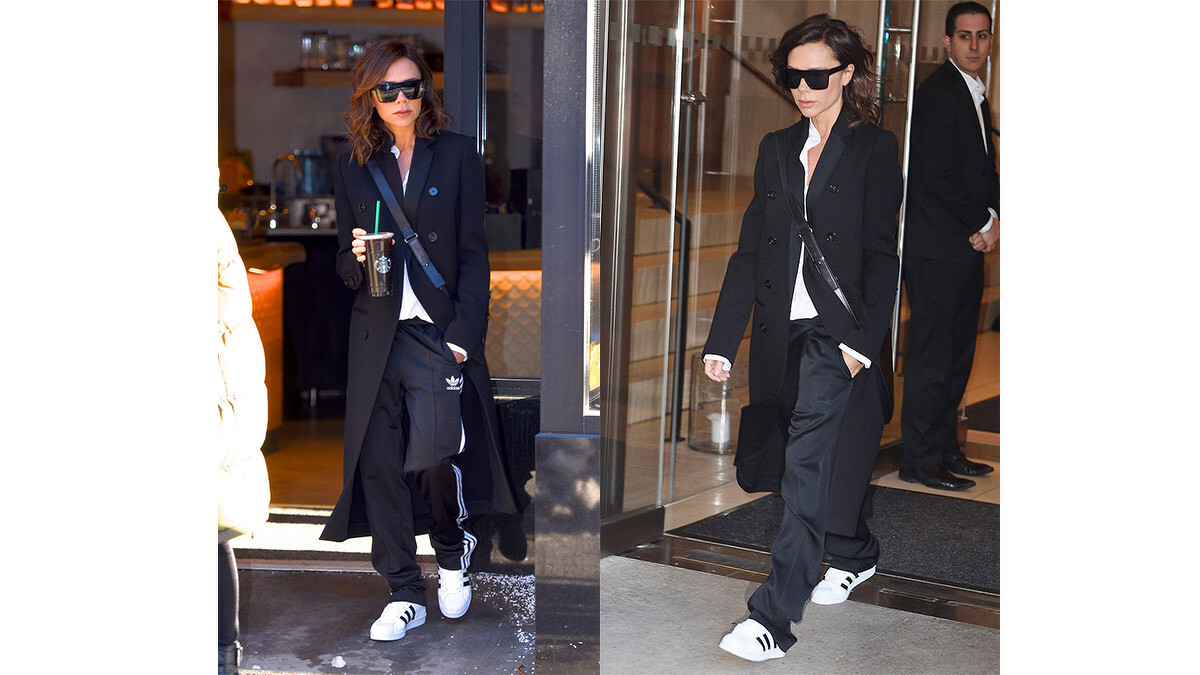 來看看這些A咖明星都怎麼穿吧!首先就是流行品味一直大受好評的維多利亞貝克漢,將Superstar搭配西裝褲、西裝外套,穿出簡約又充滿都會時尚感的私服造型。