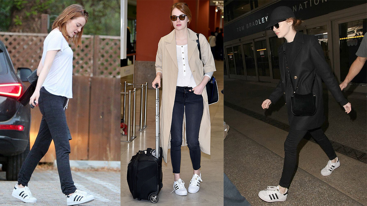 而30世代代表Emma Stone,私服走簡單休閒風格,腳踩一雙Superstar瞬間點亮整個造型。