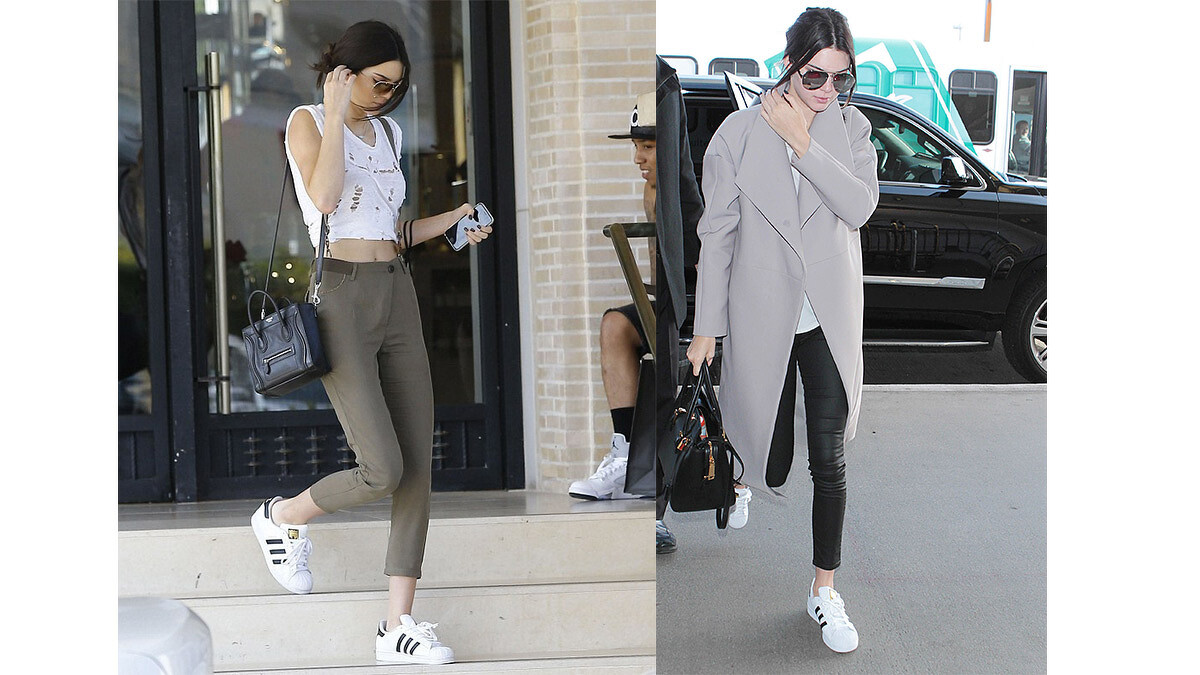最後,擁有無數名牌鞋的超模Kendall Jenner,最愛的也是Superstar,多次看她在街頭被狗仔跟拍,衣服搭配的都很簡單,踩著Superstar就是有型。