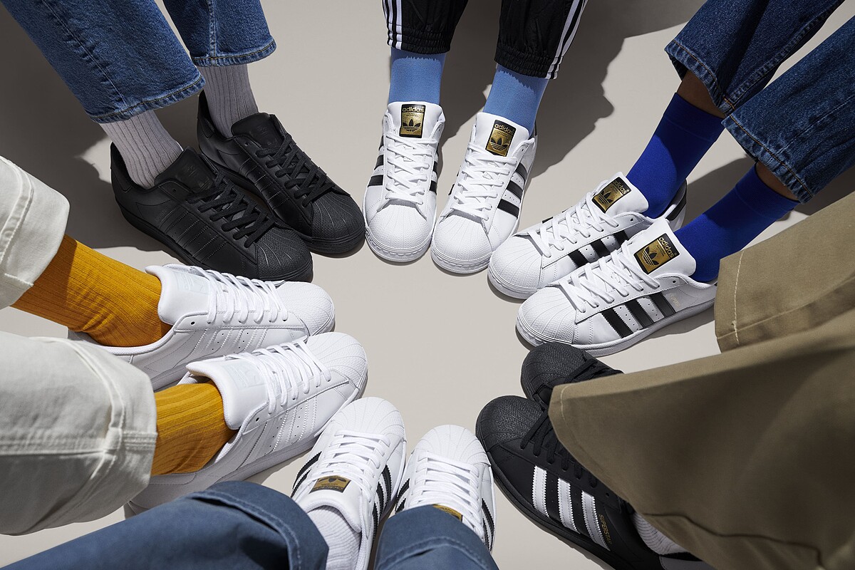 Superstar被當時籃球界的風雲人物賈霸穿上賽場後瞬間爆紅,但讓Superstar跨出運動界、真正成為街頭潮流霸主的是饒舌團體Run DMC,不綁鞋帶、拉出鞋舌的穿法,成為當時年輕人爭相仿效的對象。
