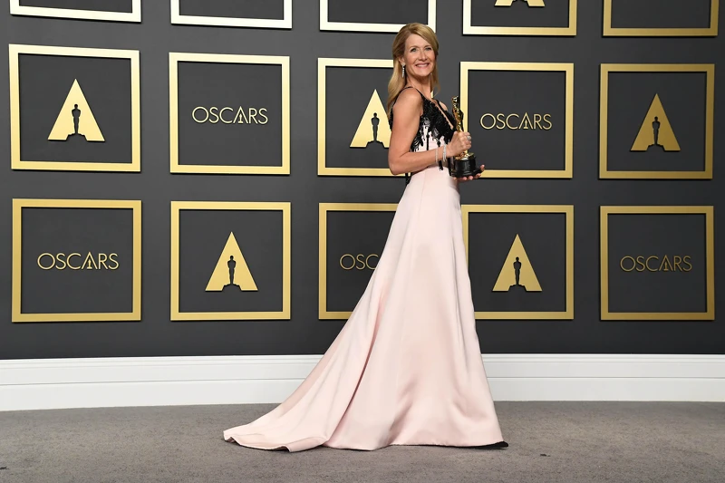 在《她們》中飾演媽媽角色相當到位的蘿拉鄧恩(Laura Dern),本屆也憑藉《婚姻故事》奪下最佳女配角獎的奧斯卡小金人。現身紅毯時,她穿Armani Privé淺粉色禮服登場,簡約的剪裁搭配胸前的黑色流蘇與水晶裝飾,恰到好處的點綴,完美呈現個人氣質。