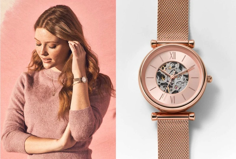 在復古浪潮的推進下,就屬能呈現質地的皮革與玫瑰金,最讓人流連。MECHANICALS CARLIE以細緻且一致性地的玫瑰金,打造貴金屬輕奢的簡約工法,佐上修長織網錶帶,輕盈服貼於手腕,打造如巴黎黃金年代的復古名伶風格,舒適地呼應優雅女性的日常。