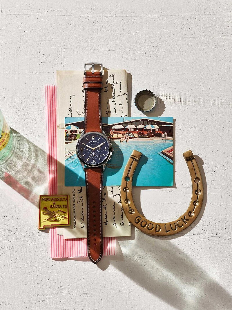 有趣的是,Fossil以「Modern Americana」為名的主題,並非義無反顧地過度提取美式休閒的Casual,而是用最舒服的線條與材質,聰明地創造帶有經典復古風格的腕錶與包款。以錶徑46毫米做為開展的FORRESTER CHRONO,將男人骨子裡喜愛腕錶的直覺,反應在設計裡;無論是配有藍色緞面錶盤、真皮皮革的款式,還是俐落調性的黑色不銹鋼材質,都搭載了三個分別呈現各種書寫時間訊息的副錶盤,埋入歷史錶款的設計細節,隱約帶出仿舊氛圍和當代線條組合的新意。