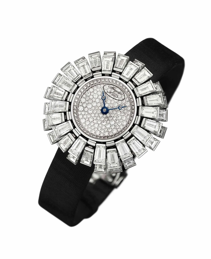 被收藏家暱稱為「大花」的 Crazy Flower 系列,以瑪麗安東尼皇后對於花的喜愛而設計,這只 Crazy Flower 高級珠寶鑽錶錶框鑲有116顆活動式方形鑽石(約34.57克拉),表盤凸緣鑲有66顆鑽石,凹形表盤鑲有206顆鑽石,偏心時圈鑲有20顆方形鑽石,奢華璀璨的設計表現出瑪麗安東尼皇后對於花朵奔放的充沛情感,而作品的耀眼光芒正有如皇后光彩奪目的氣質。