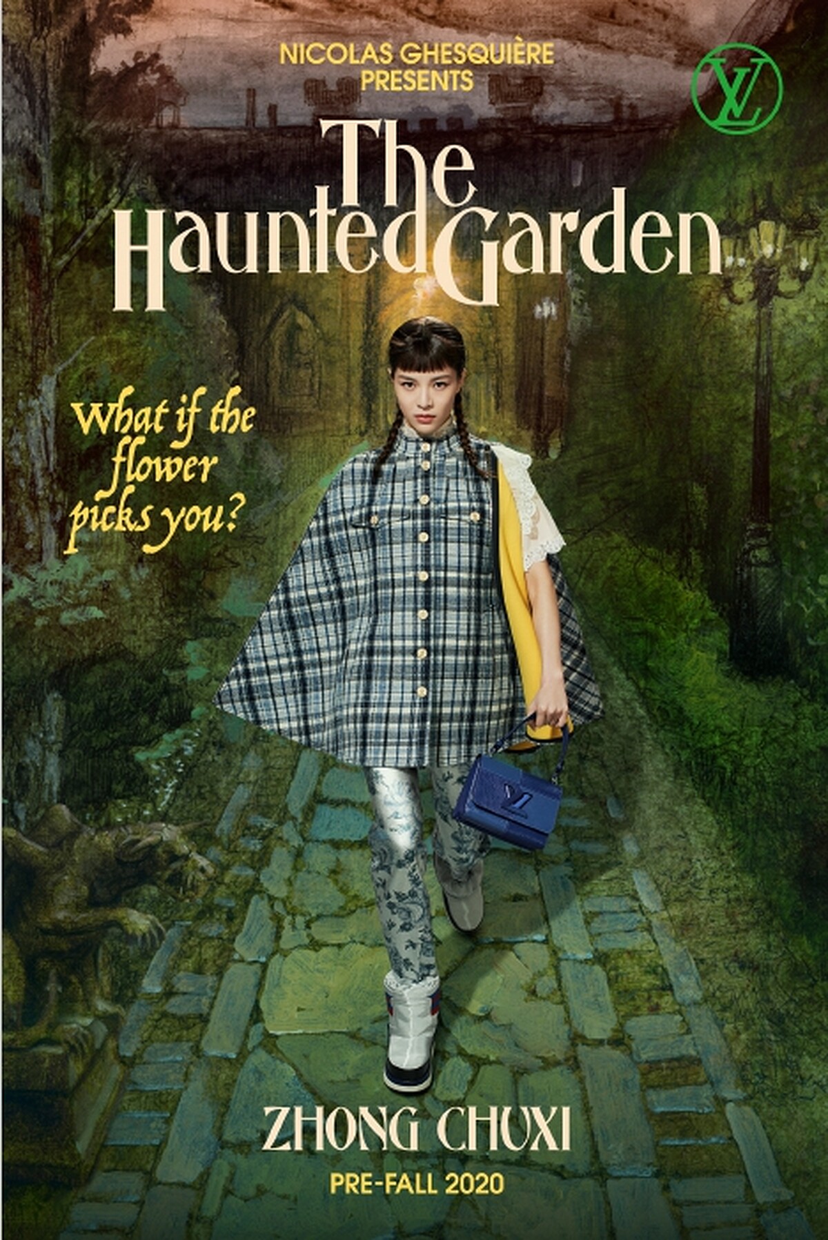 秋冬依舊深受矚目的格紋與斗篷元素,由鍾楚曦以女孩模樣詮釋出走進充滿有著幽魂花園中的《The Haunted Garden 靈異花園》小說情節,雖有著驚悚的不思議感,眼神卻又同時透露出堅決果敢,魔幻且真實。