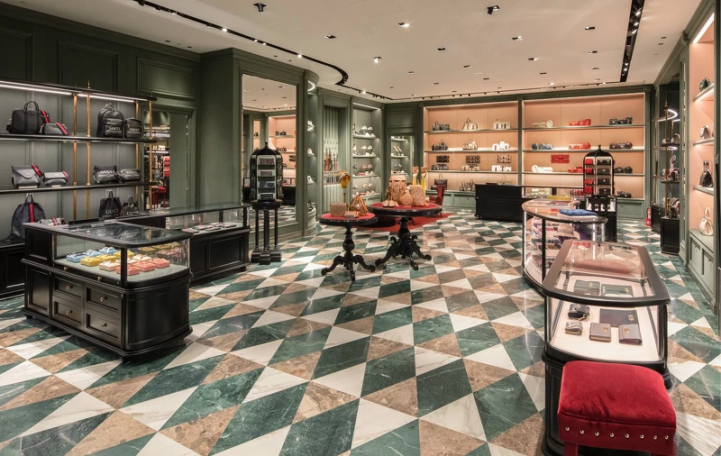 值得一提的是,外牆高達2層樓高的Gucci免稅店,是全台首間比照國外規格設計的專賣店,珍稀墨綠色蛇紋建材搭配義大利進口大理石拼接的外牆,吸睛度十足,室內空間融合工業風與浪漫風格,專賣店上熱賣商品這裡也都能買到,像是經典OPHDIA系列、Logo皮帶、爆紅Marmont 2.0包,更包含人氣米老鼠系列。