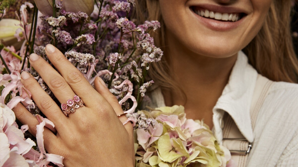 一起踏進Pandora的春日花園!一直以來對大自然有高度喜愛的Pandora,2020春季以小雛菊為設計靈感,選用Pandora Rose玫瑰金及優雅光滑925銀材質,透過細膩的珠寶工藝將琺瑯染上色彩,並鑲嵌上一顆顆的閃耀鋯石,打造出一系列粉嫩的小雛菊串珠、墜飾、項鍊及戒指。