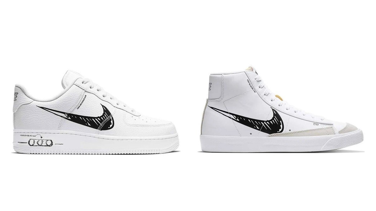 日前Nike再發表一雙限定版Air Force 1,自Tinker Hatfield所創作的Air Max 1 Sketch to Shelf系列擷取靈感,將明星鞋款Air Force 1與Blazer改以黑白手繪畫風重新詮釋,鞋面上經典的Swoosh Logo以描繪的方式呈現,鞋舌上也運用同樣的手繪標誌,側邊鞋底還有用手繪繪製出的氣墊圖樣,相當具有巧思。