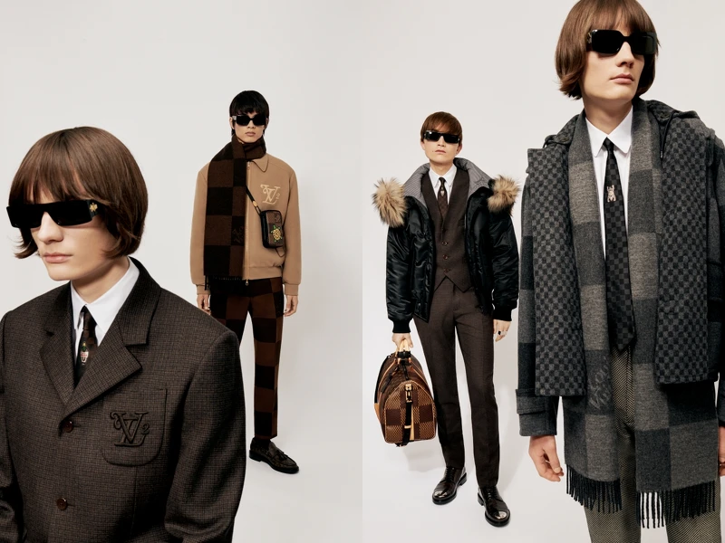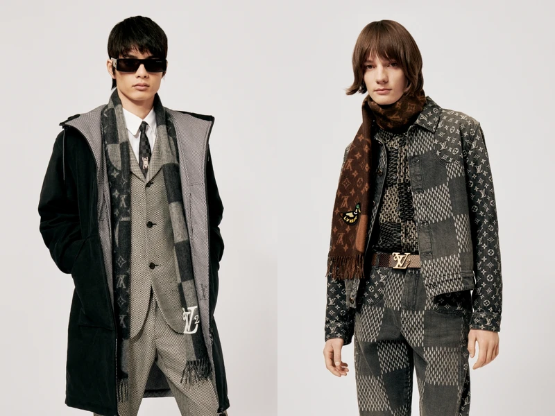 不只包款可愛,飛行員夾克、領帶、圍巾等,均注入了可愛的小圖案,讓女生看了也羨慕。例如飛行員夾克,背面就注入了富士山圖案,並寫上「LVMADE」致敬Nigo創辦的Human Made。此外,在圍巾與領帶上,也用Nigo經典的動物元素裝飾,讓本該正經八百的正式單品,加入俏皮元素帶來獨特風格。
