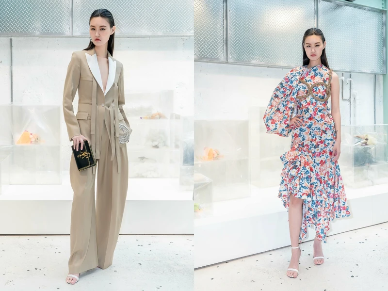 2020春夏,總是以童趣、中性風格走天下的Johnathan,刻劃出比以往更具女性氣質的系列,春意滿點的印花、粉嫩的色彩、垂墜的面料,通通都在勾勒舉手投足都超有女人味的女子。他還讓他們穿上「水晶鏤空胸罩」,藉此挑戰大家的凝視習慣。