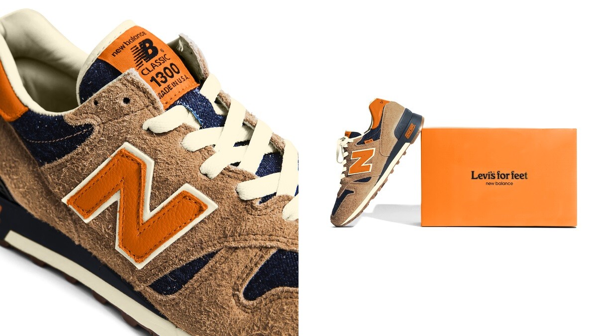 New Balance x Levi’s 聯名1300鞋款將採限量發行,隨鞋附贈特別版Levi’s for feet和New Balance橙棕雙色珍藏版鞋盒,將於4月24日於New Balance、Levi’s限定門市開賣,每雙售價為NT8,650,身為New Balance、Levi’s鐵粉的你千萬別錯過。