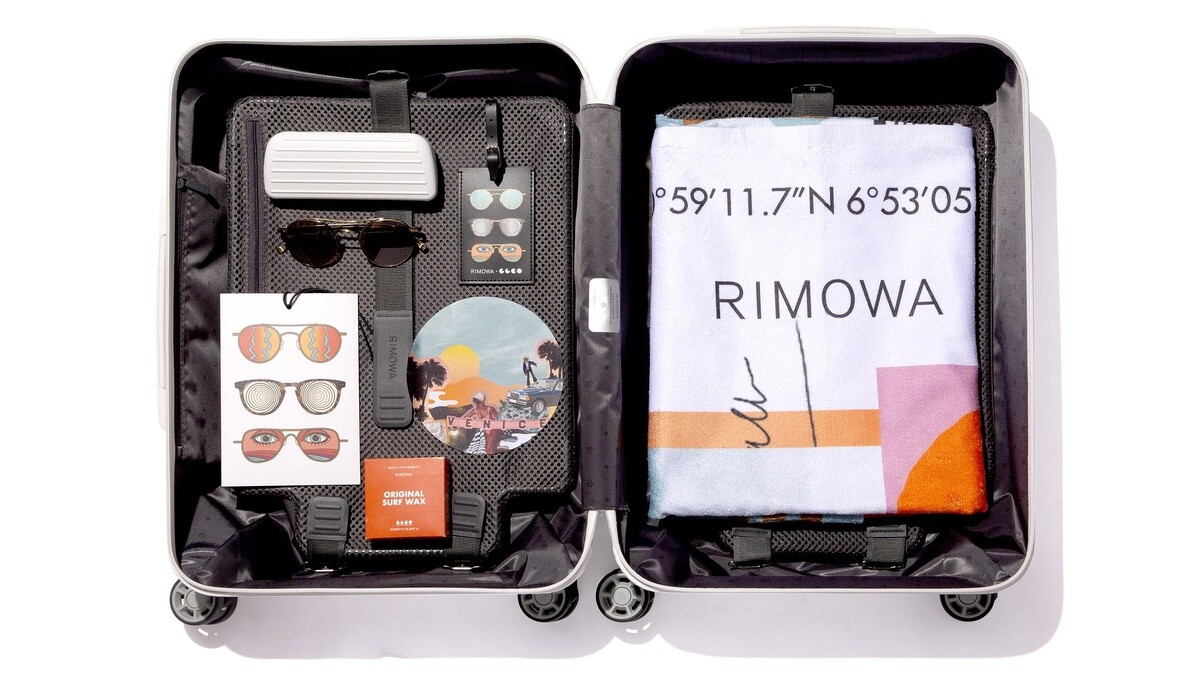為傳遞加州維尼斯海灘的愜意生活而推出的RIMOWA x Garrett Leight海灘旅行套組,包含太陽眼鏡、特別版行李箱、行李箱掛牌及貼紙與其他海灘配件:海灘毛巾、衝浪蠟、100%回收材料製成的手提袋,身為RIMOWA迷的你絕對要收藏!