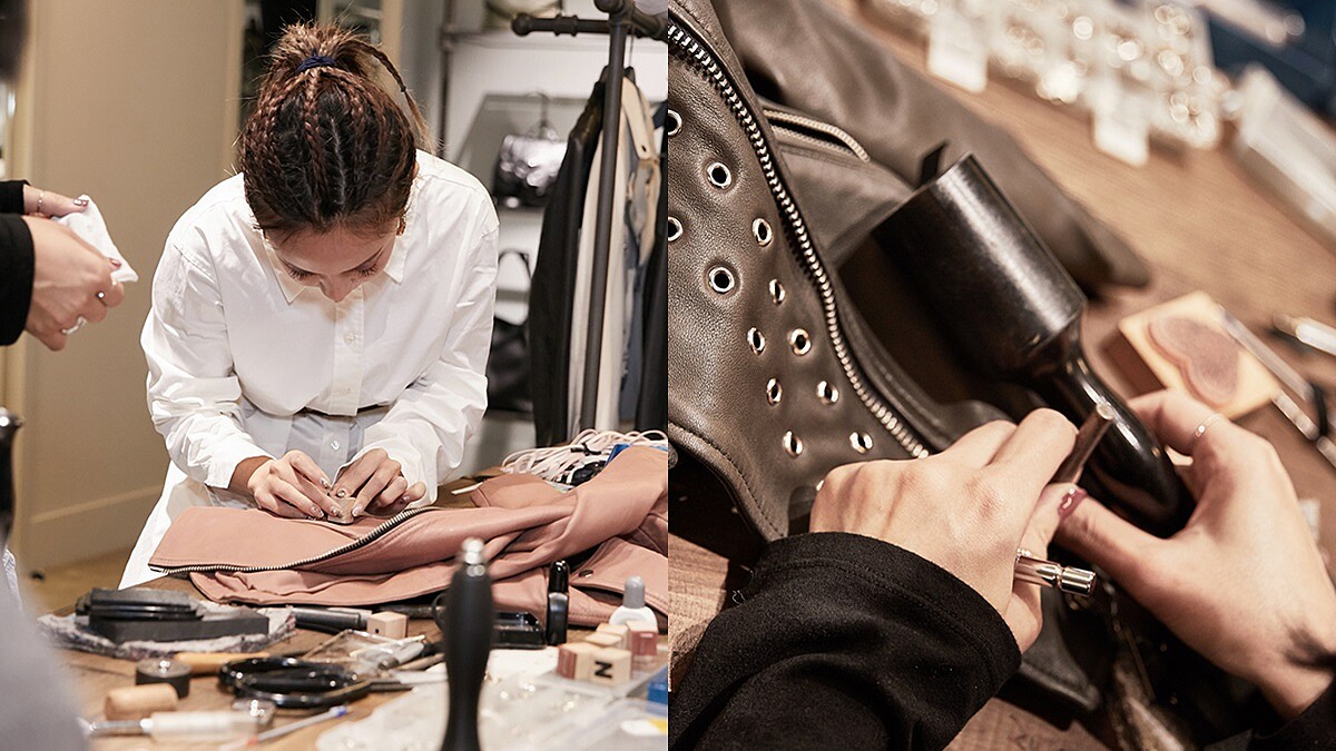 提到ALLSAINTS自然而然就與皮衣作連結,品牌特地舉辦春季皮衣慶典,推出專屬皮衣訂製服務,並找來專業皮革師傅操刀,與顧客溝通設計後,就能在皮衣上加上鉚釘、別針及流蘇細節,為自己打造一件獨一無二的專屬皮衣。