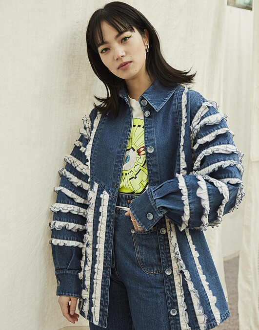 小松菜奈身著荷葉緄邊丹寧外套與同款及膝褲,隨性自然,為香奈兒2020春夏高訂秀增添一股日式清新魅力。當然她也混搭雙色COCO CRUSH戒指,大膽巧玩活潑時髦的指間派對。