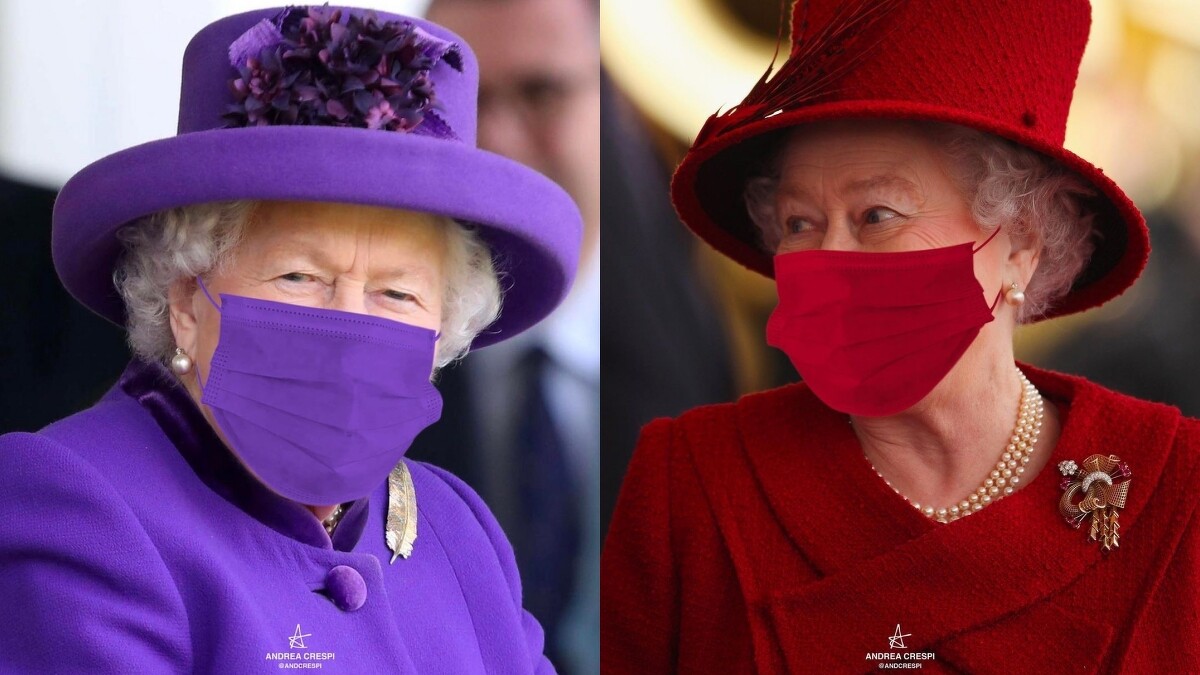 大家都知道,防疫時期保護自己亦是保護他人,因此「口罩」成為人人必備單品,不分男女老少、長幼。此時英國女王(Queen Elizabeth II)戴起來口罩的照片也流出,而且依舊保有她堅持幾十年來的One Tone配色美學,紫色套裝配紫色口罩、酒紅色套裝配酒紅色口罩,身體力行呼籲大家「口罩戴起來」,保護自己、保護他人。雖然這系列照片,讓人瞧見94歲女王可愛的一面,不過其實這是義大利藝術家Andrea Cerspi的幽默作品,他為女王P了一系列口罩穿搭圖。