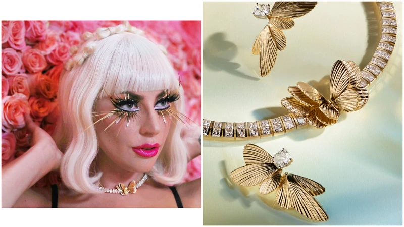 透過現質地與形狀的對比,捕捉蝴蝶的優雅姿態,致敬 Tiffany & Co. 經典的蝴蝶設計,其中一件鑲嵌了公主式切割鑽石的18K金蝴蝶項鍊作品,更是受到Lady Gaga 青睞,配戴出席MET Gala。