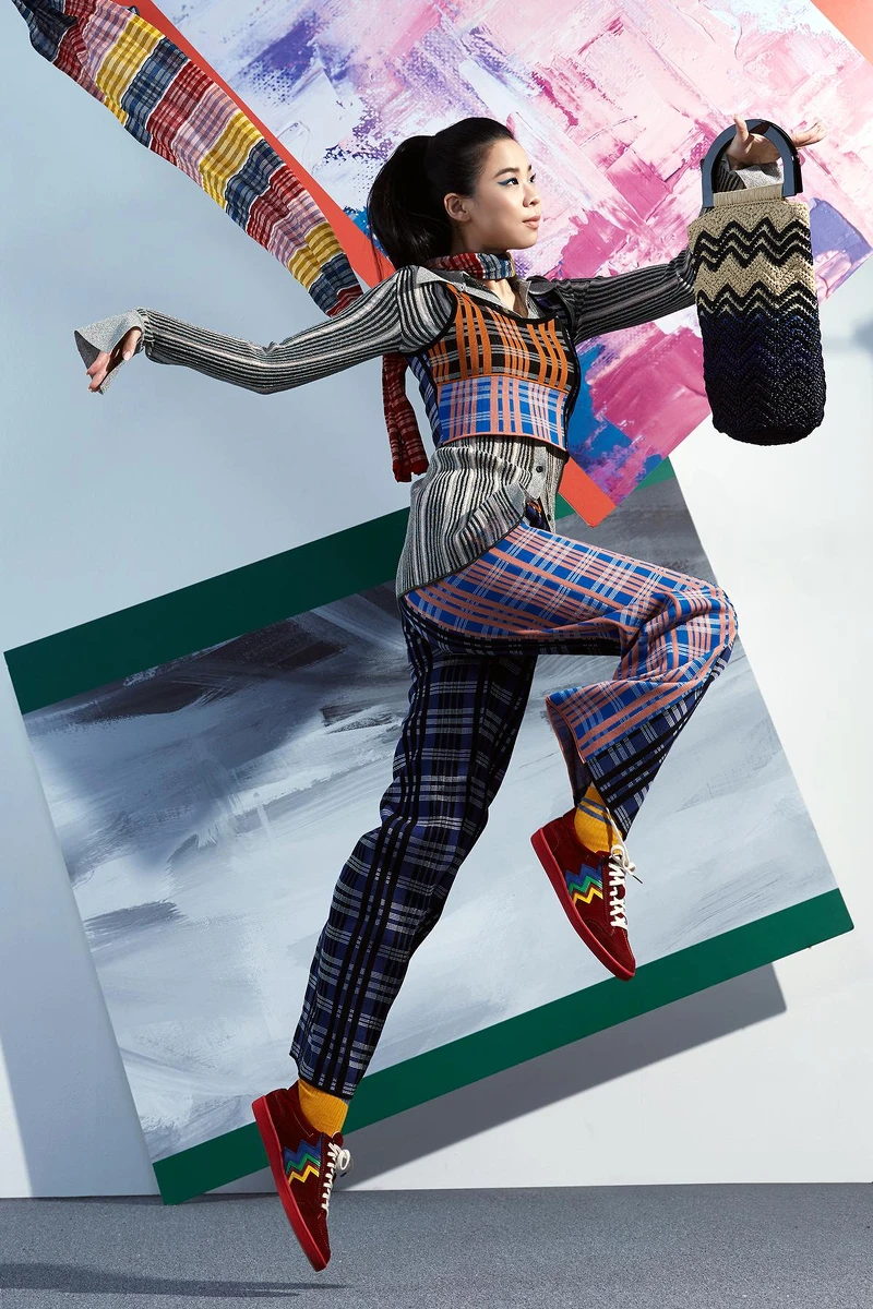 李瑜建議,如果想嘗試圖案X圖案的創意穿搭,最好也最容易出現驚喜碰撞火花的選項,那便是格紋與條紋的組合搭配,像這套造型便是她以M MISSONI系列的經典彩色條紋及格紋兩種圖案作貫穿重點的主題,活潑繽紛卻又一點不顯雜亂,在舒適輕鬆又自在的狀態下擁有一登場就完勝的風格造型,絕對是時髦女生必需GET的搭配法則。