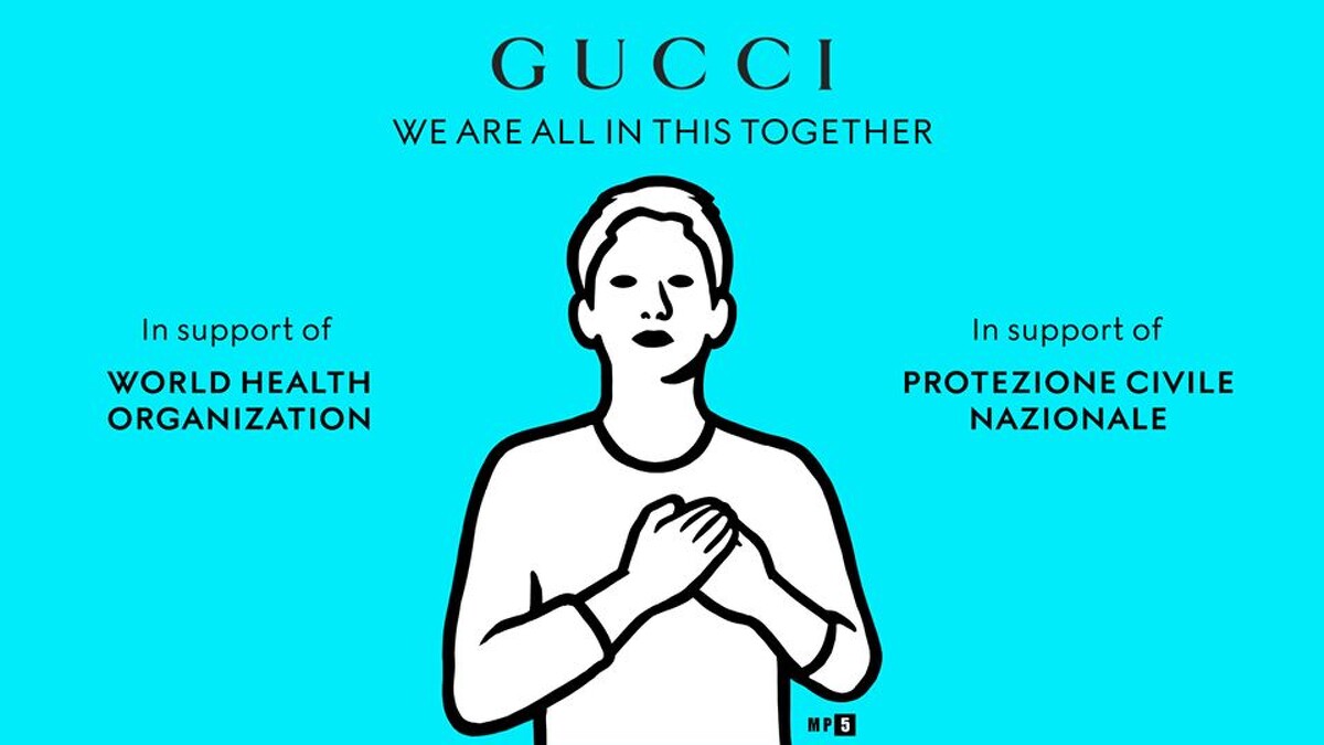 GUCCI並公開,總裁暨執行長Marco Bizzarri及創意總監Alessandro Michele共同署名給全球員工的信件,內容提及「這場嚴重流行病喚起我們投入未曾預期的任務,但是也號召我們更果斷地因應,並力挺健康照護工作人員、醫師、與護士等在前線」等,且同時宣布明起GUCCI旗下擁有7,000萬粉絲的社交帳號將移交WHO管理,協助發佈官方公共服務資訊,以保障人們的健康、安全與福祉。