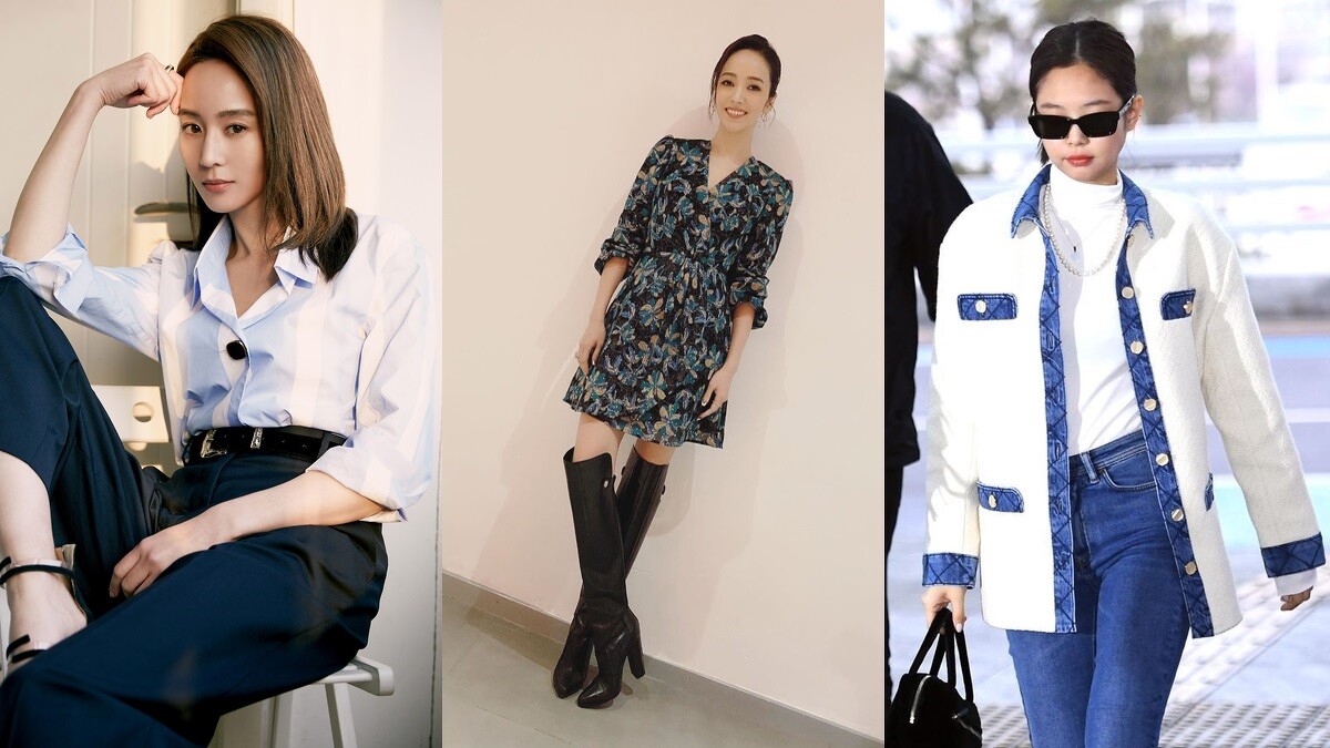 張鈞甯這套藍白相間之條紋襯衫搭配俐落寬版長褲,展現知性俐落的都會風格。候佩岑也曾穿著V領印花洋裝在螢光幕前亮相,充滿優雅氣質的女人味。有人間香奈兒之稱的BlackPink Jennie機場穿搭中,有一次就穿著Sandro春夏系列的白色丹寧針織開襟毛衣。