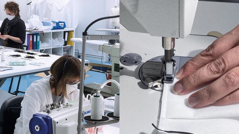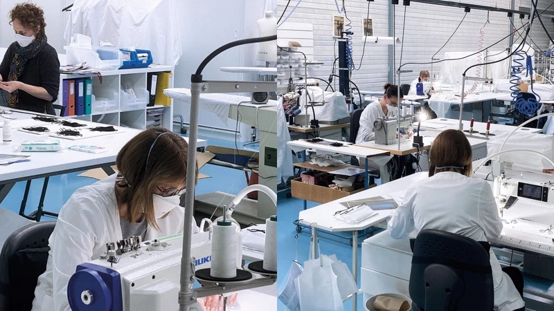繼旗下產線自製乾洗手後,集團旗下的Baby Dior工坊也加入生產口罩的行列,一個一個手工縫製!工坊內的員工暫且放下過往縫製服裝配件的工作,先將如今做重要的口罩放在第一位,盡棉薄之力,守護前線醫療人員。