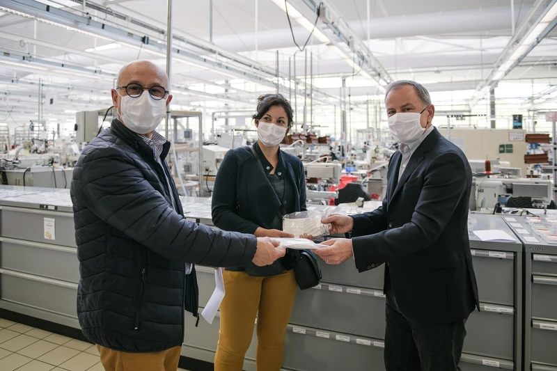 LV主席兼行政總裁Michael Burke與弗洛朗斯Marpa護養院院長Correira女士及埃薩爾昂博卡日Saint-Vincent de Paul療養院院長Gaborieau先生,率先視察位在聖弗洛朗斯的工坊後,宣布生產線正式開工,有22名工匠自願參與項目,共同生產口罩供給前線醫護人員使用,未來兩間機構也會獲得工坊生產的口罩支援。