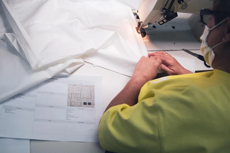 目前,除廠房外,總部會議室也改成口罩工作間,總部員工們戴起口罩縫製這些必要性防疫物資,接下來數週內,生產就緒後,將會捐給當地公共機構。
