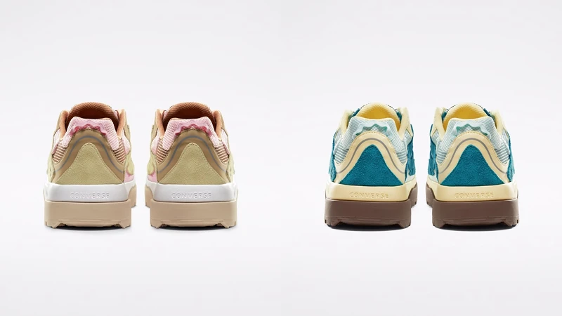 Tyler將他對單車與戶外徒步的喜愛,與Converse設計團隊一再溝通近兩年的時間,最終打造出具復古細節的老爹鞋款Gianno。看似個性的鞋型,卻有著柔和的線條設計,並飾以標誌性的小花圖案,而2020年4月再推出應景春夏的馬卡龍色系:明亮的淺粉色和天藍色。