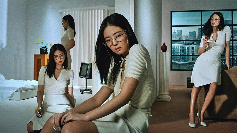 Gentle MonsterXJennie的聯名系列大片,以最近超夯的宅在家為主題,為此特別搭建出結合Jennie與Gentle Monster的名字的「Jentle Home」,並讓Jennie在家裡穿上中空運動裝、胸前鏤空剪裁的紅色洋裝、大U領大理石紋低胸洋裝,戴上墨鏡展現巨星在家的時髦模樣。宣傳手法也很有趣,上官網就能看到Jennie私訊敲你,直接回應就能聊一波囉~