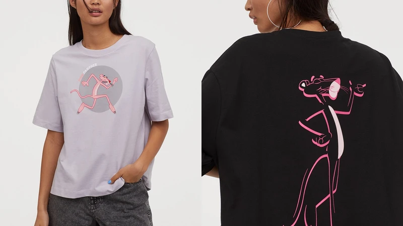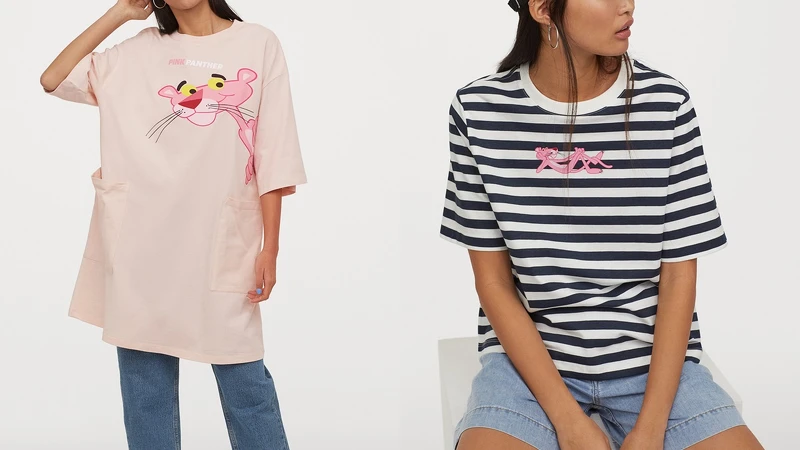 H&M Divided粉紅頑皮豹聯名系列,以粉紅頑皮豹的幽默風趣為主打形象,運用黑白條紋、普普風元素,搭配淡粉色、淺紫色、卡其色及丹寧色系,打造印有頑皮豹圖案淡粉色長版上衣、草莓圖案點綴的粉紫色上衣、頑皮豹圖案短版上衣等。時尚頑皮豹合作系列已經在全台門市正式販售,價格從249元到1299元不等。