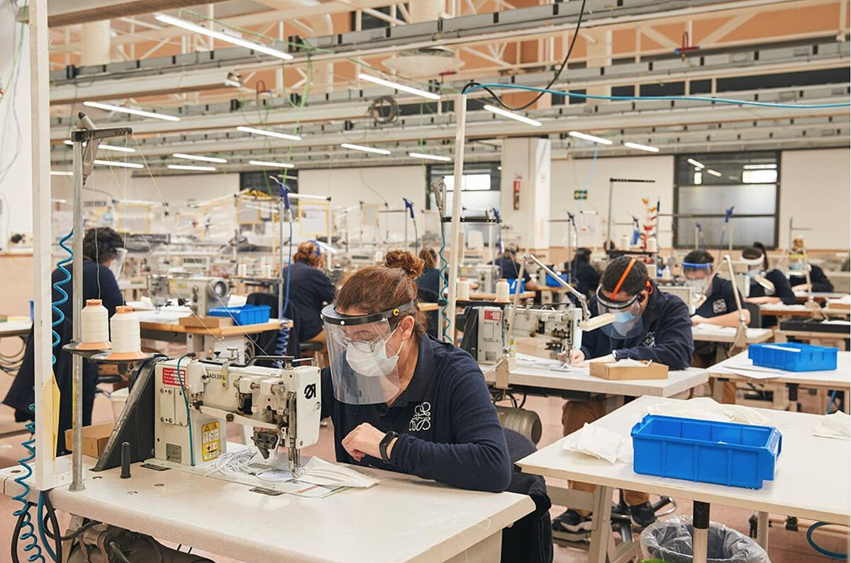 此外,位於首都馬德里南方的赫塔菲(Getafe)的工廠也開始製作非外科口罩,工匠們穿起制服、配戴口罩與透明面罩進行縫製,成品將提供給自家員工和家人。