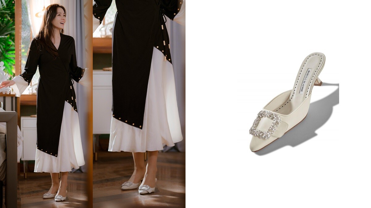 1972年創立於英國的Manolo Blahnik,不僅是被譽為凱莉御用婚鞋品牌,在韓劇《愛的迫降》中,飾演財閥千金尹世理也以經典鞋款Maysale作為居家穿搭,方型的鑽釦設計顯盡奢華、高貴,穿孫藝珍腳上襯托她在劇中女強人的氣場。